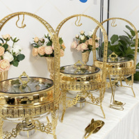 Luxury Golden Stand Buffet Food Warmer Catering Party Soup Pot Round Chafing Dish With Glass Cover